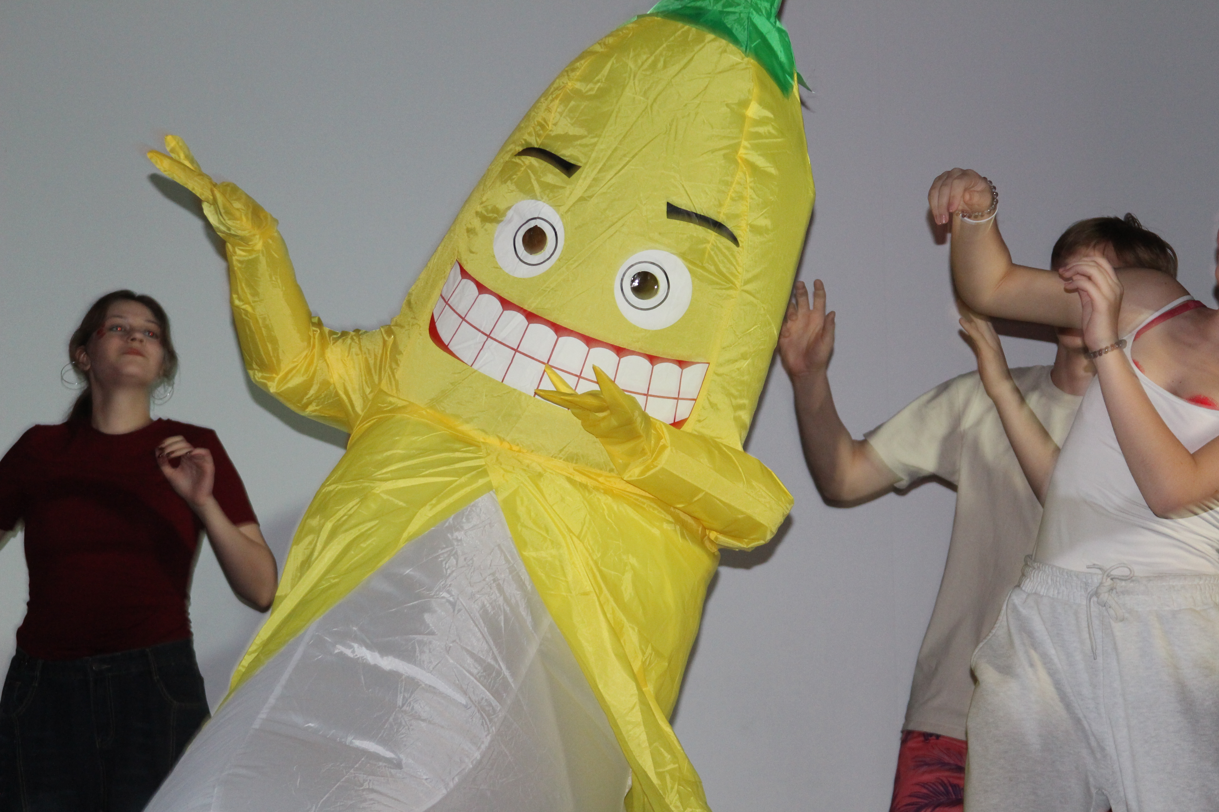 Концепцию вечернего мероприятия лицеисты узнали буквально за несколько часов до его проведения, поэтому пришлось подключать критическое мышление и нестандартные подходы! Ребята самостоятельно разделились на команды и выбрали себе номера, для каждого из которых заранее было заготовлено задание. Никаких условий и ограничений: главное — креативный подход. С этим участники справились на все 200 процентов: небольшие юмористические постановки заставляли зал смеяться до слез. Тем для шуток было много: одна из команд устроила ролевую игру совета директоров и даже успела снять небольшой рекламный ролик, другая — провела переговоры с инопланетянами, подобрав забавное звуковое сопровождение. Также среди участников была команда, которая подготовила номер еще до выезда: ребята решили купить огромный костюм банана для своей постановки. Их творчество было оценено бурными аплодисментами!