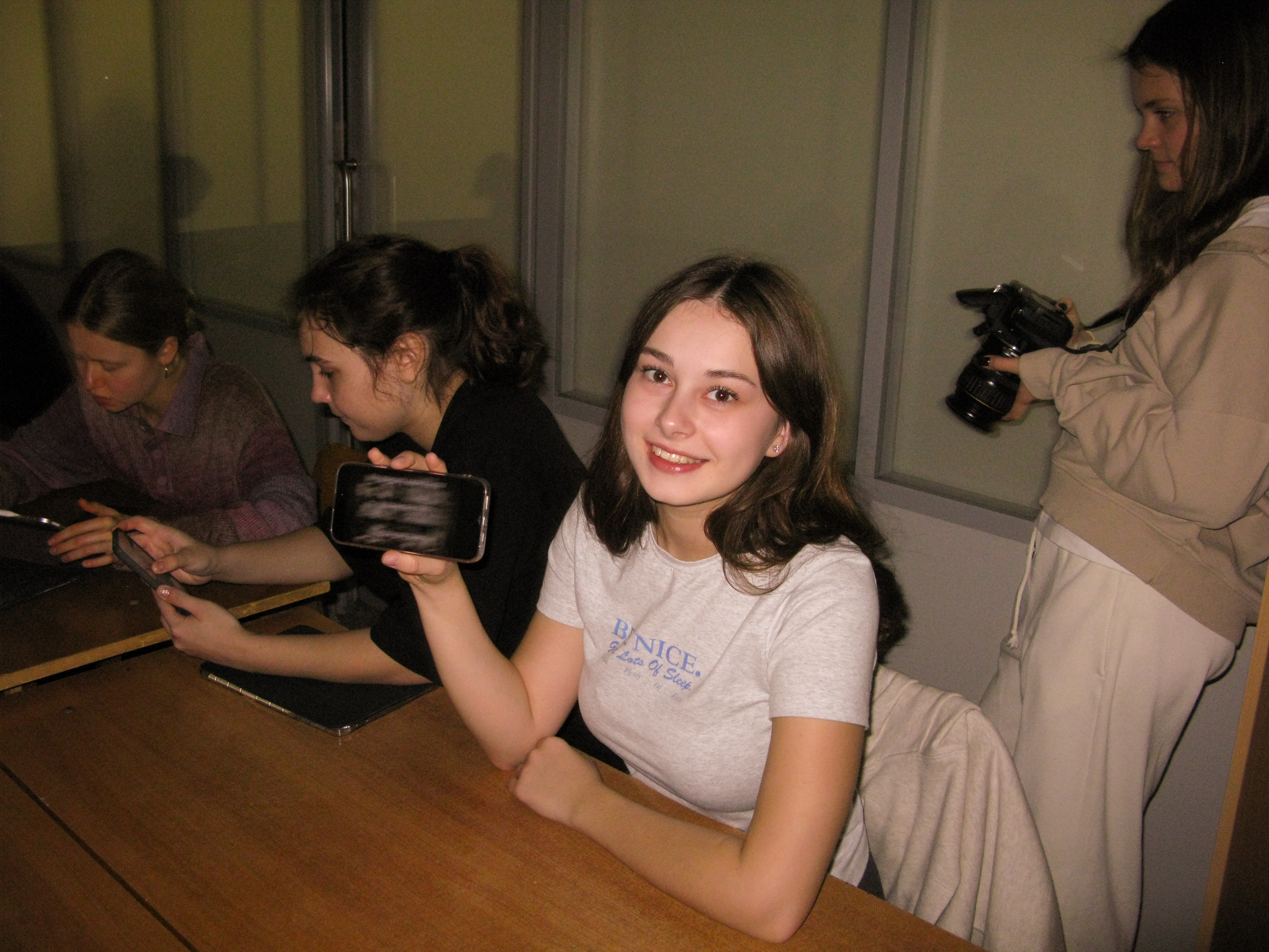 Разумеется, медиакоманда не могла остаться в стороне! Задачей этой мастерской было запечатлеть выезд, чтобы другие тоже могли ощутить приятную атмосферу, которая окружала лицеистов Трифона на протяжении трех дней. Работа в медиакоманде не лишала участниц (команда полностью состояла из девочек!) возможности наблюдать за работой в других мастерских, и это отмечает сама куратор.